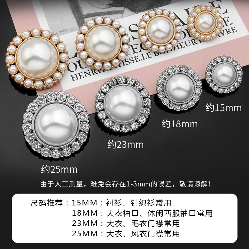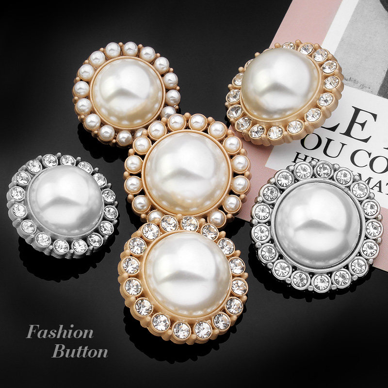 Metal button woolen coat cashmere suit women's all-match pearl small fragrance high-end diamond-studded rhinestone decorative buttons