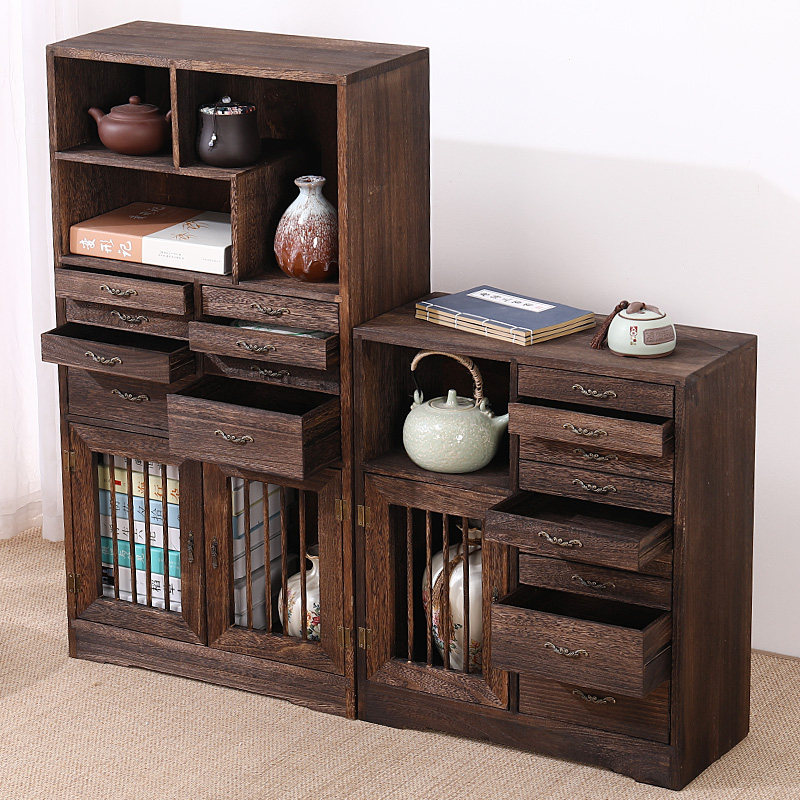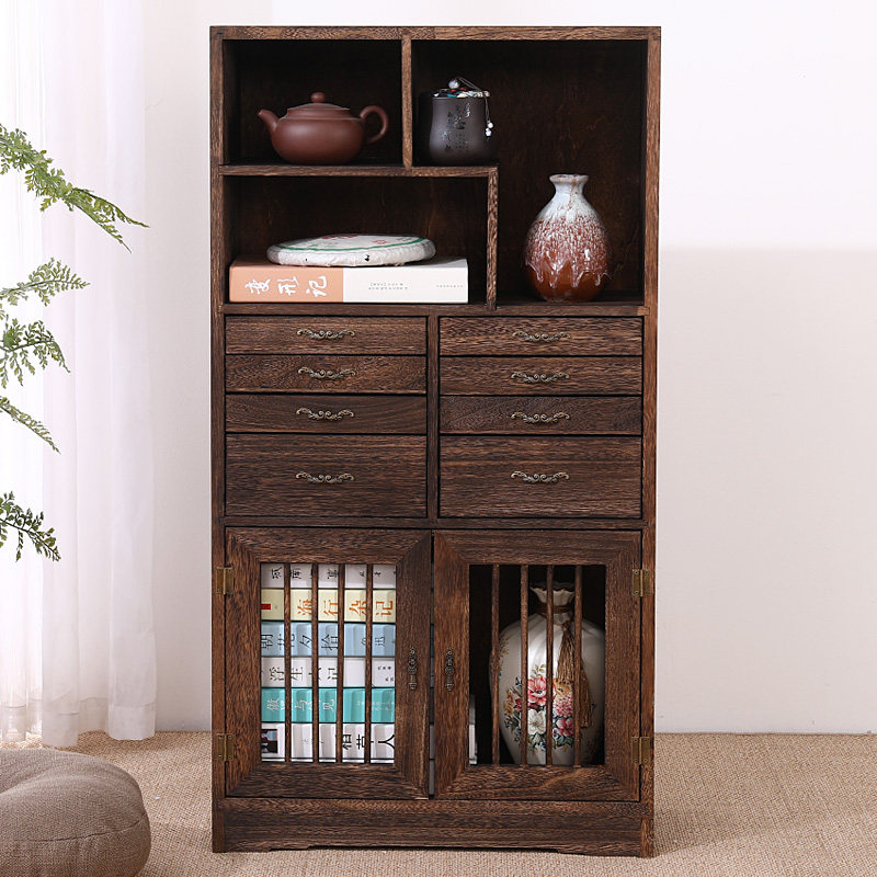 Solid wood tea cabinet multilayer tea cake storage tea cabinet tea cabinet Pu-erh tea leaf storage cabinet Drawer Deposit Tea Cabinet Bogu Shelf
