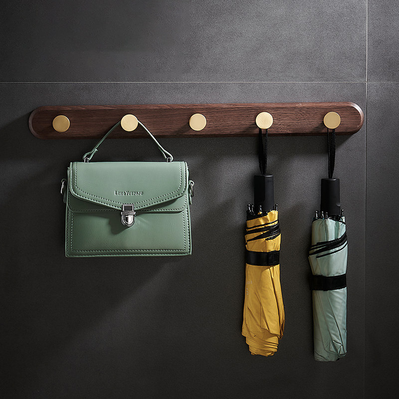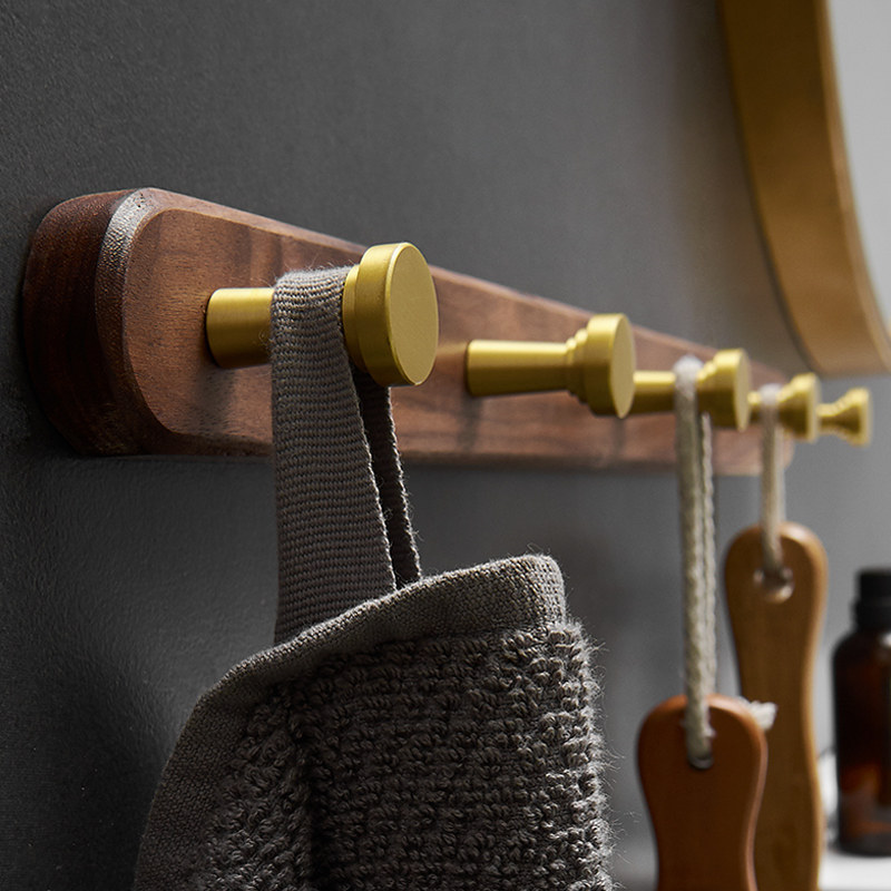 Walnut bathroom clothes hook row hook Long powder room towel free hole into the door Entrance wall hanging wardrobe