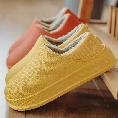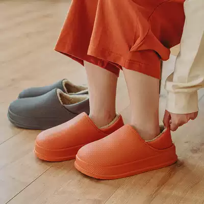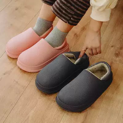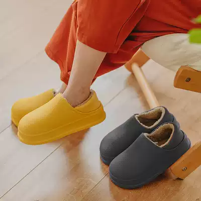 Waterproof cotton slippers women's men's bags with home hair lovers autumn and winter indoor thick soles non-slip warm winter