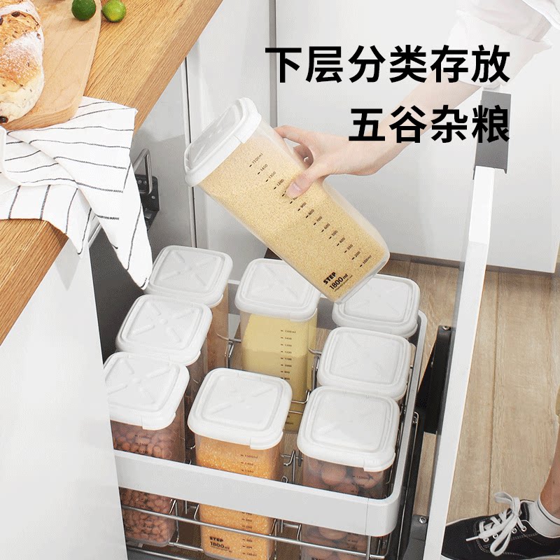 Yi chi rice box dry goods pull basket stainless steel double-layer buffered kitchen cabinet drawer type cabinet rice box storage