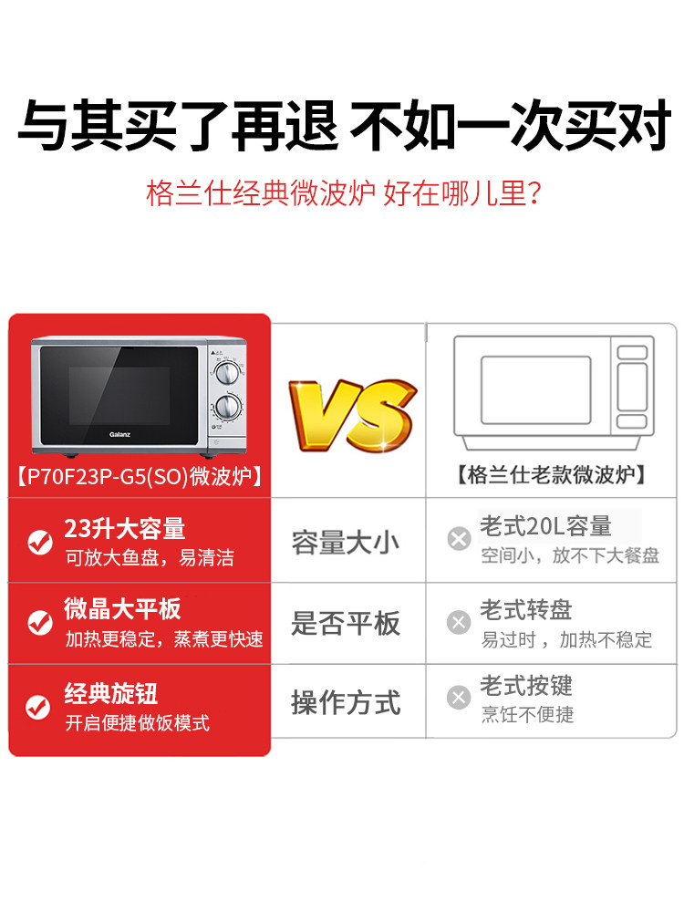 Grans microwave oven household classic mechanical knob 23L flat plate large capacity official flagship store G5SO