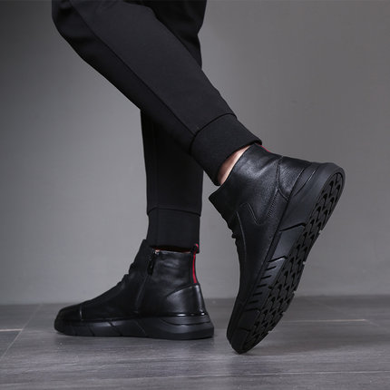 Black single shoe (high cylinder) black cotton shoes (high cylinder)