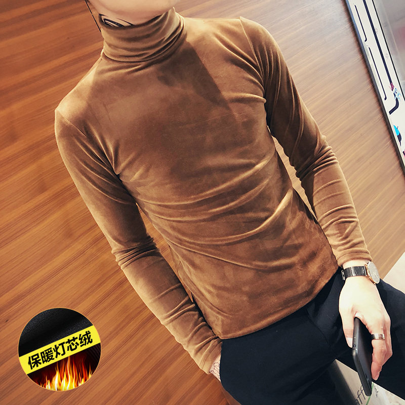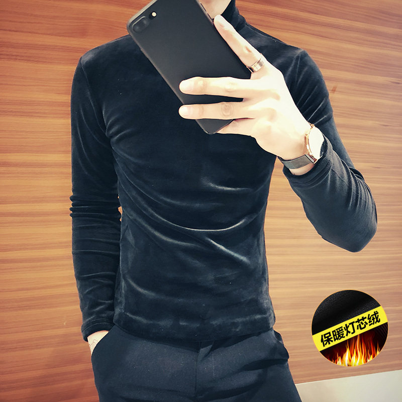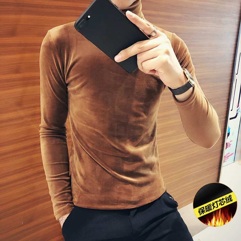 Corduroy sweater men's long sleeve T-shirt Korean trend Joker high neck velvet base shirt autumn and winter 2021 New