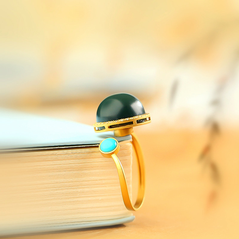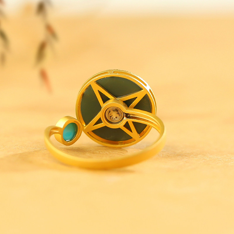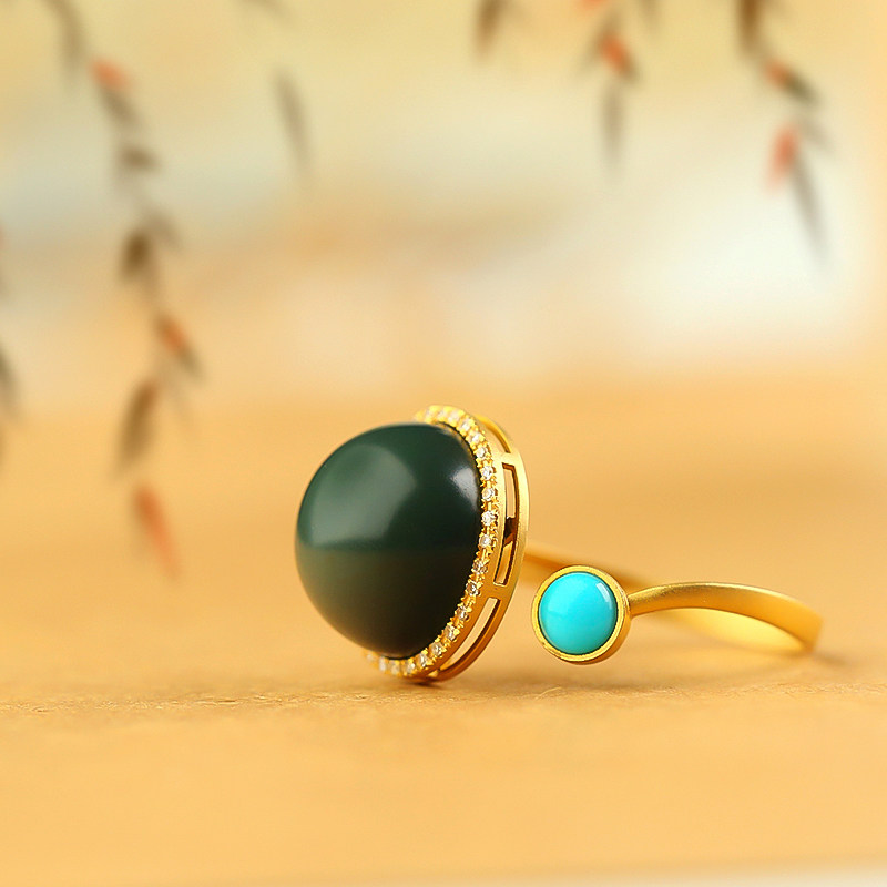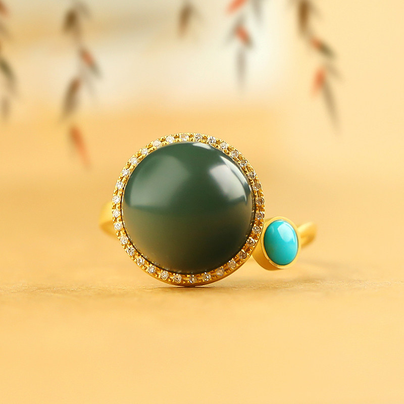 The beard of Golden Jewelry and Tian Yut Tan Qingtai Special fine ring 18k inlaid with the original mine green loose rotation ring