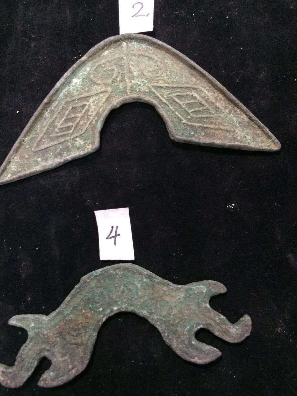 Antique bronze ware ancient coin Chunqiu Warring Guoyuan is also known as a shovel cloth red spot green rust for film and TV props collection
