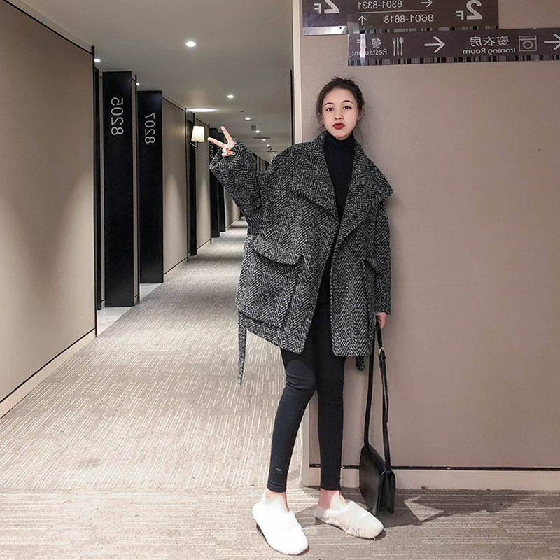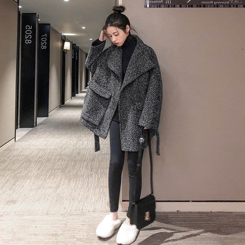 Short woolen coat women's 2022 new Korean version loose small thickened all-match small fragrance style woolen coat tide
