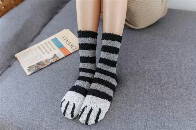RMB38 Cat Paw Socks Child Autumn Winter Coral Suede Warm Socks Thicken Garnter Floor Socks Postnatal Month Socks