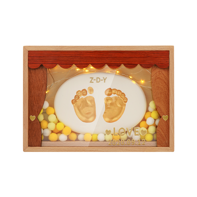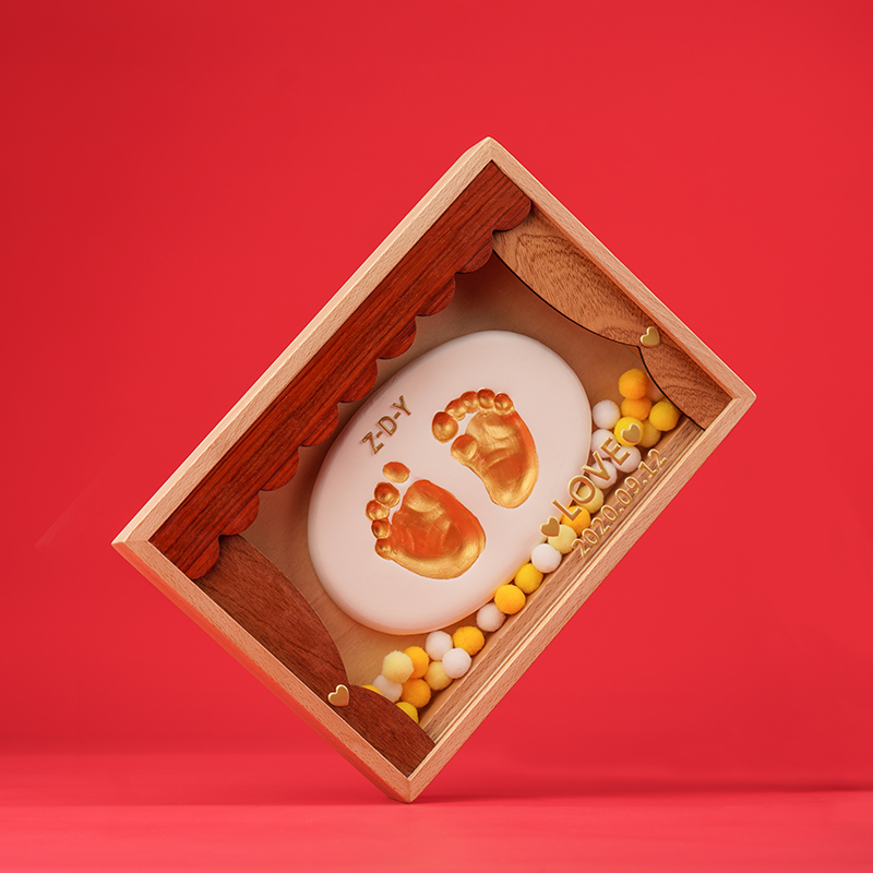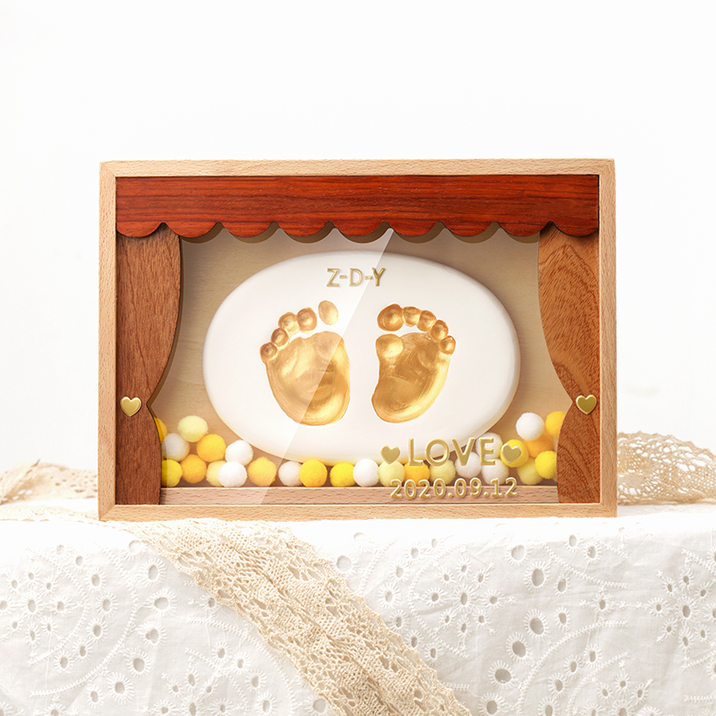Woodpapa baby hand and foot print mud souvenir photo frame newborn baby hand and foot print full moon 100 days anniversary gift