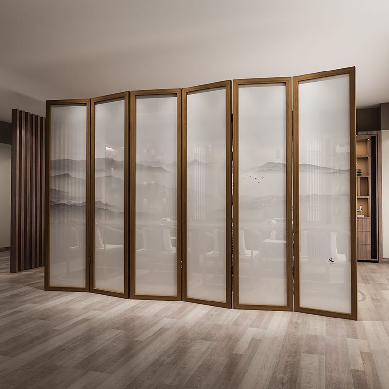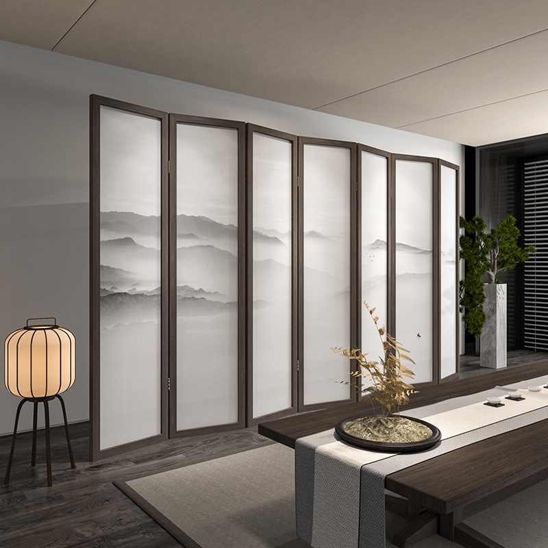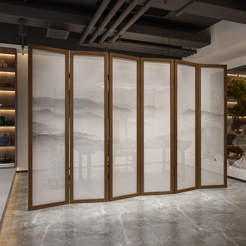 New Chinese Fold Mobile Living Room Screen Solid Wood Landscape Genguan Wall Office Tea Room Ancient Wind Brief Modern Folding Screen