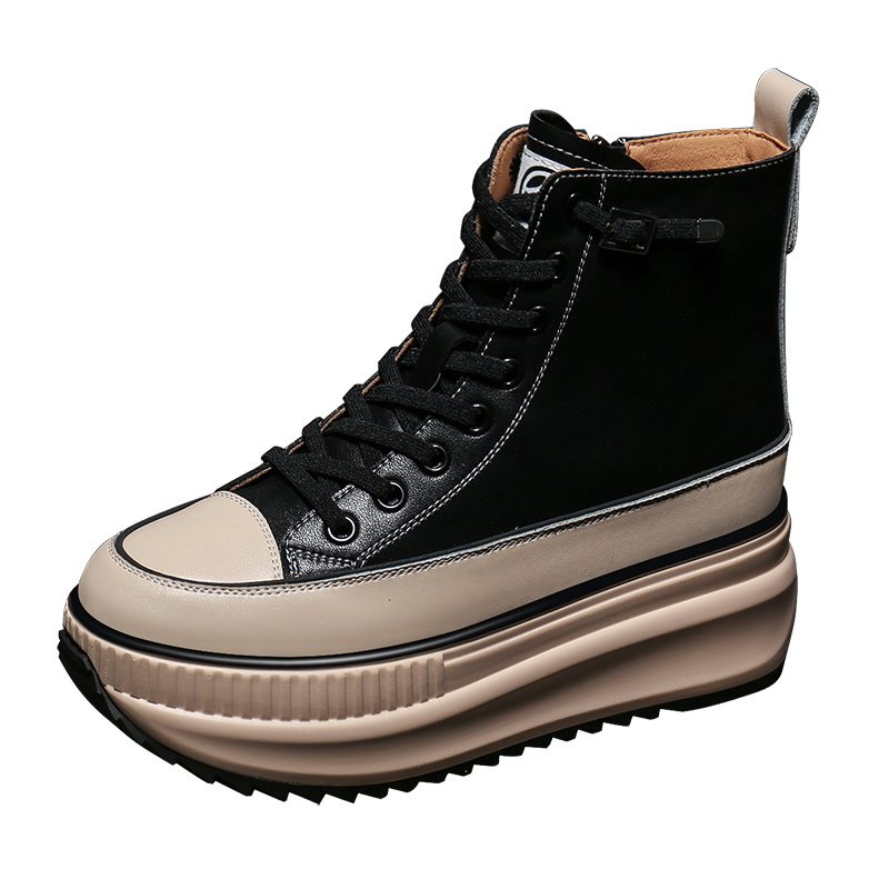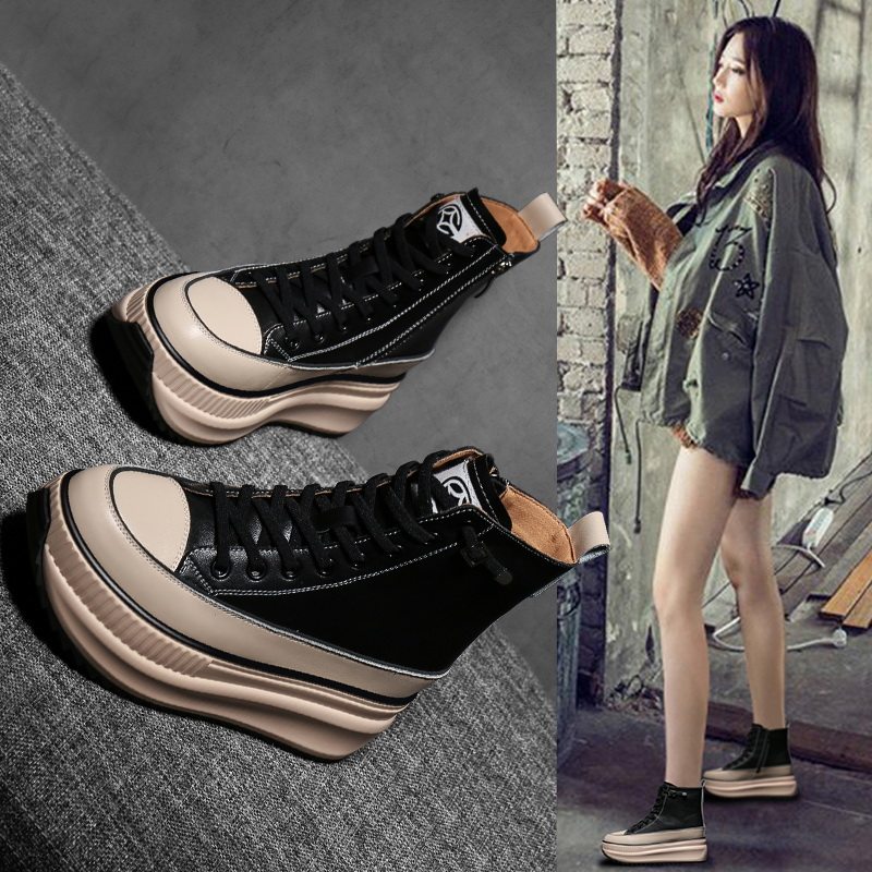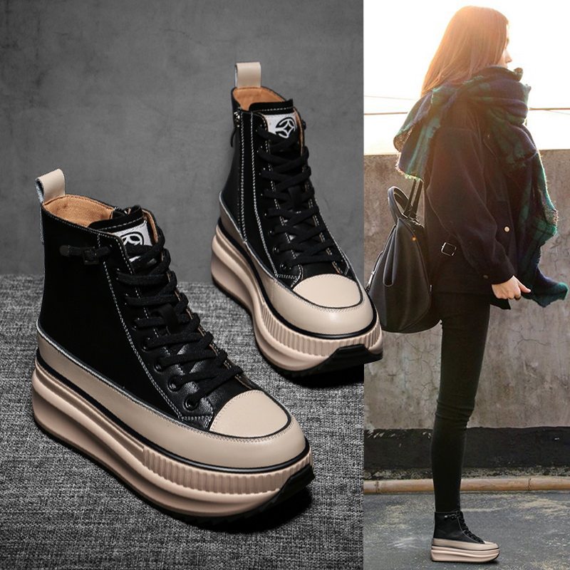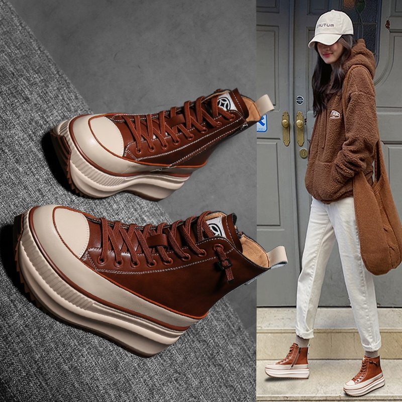 Hong Kong thick-bottomed sponge cake to increase the height of casual Martin boots Korean version of high-top shoes 2022 autumn plus velvet autumn women's shoes trend