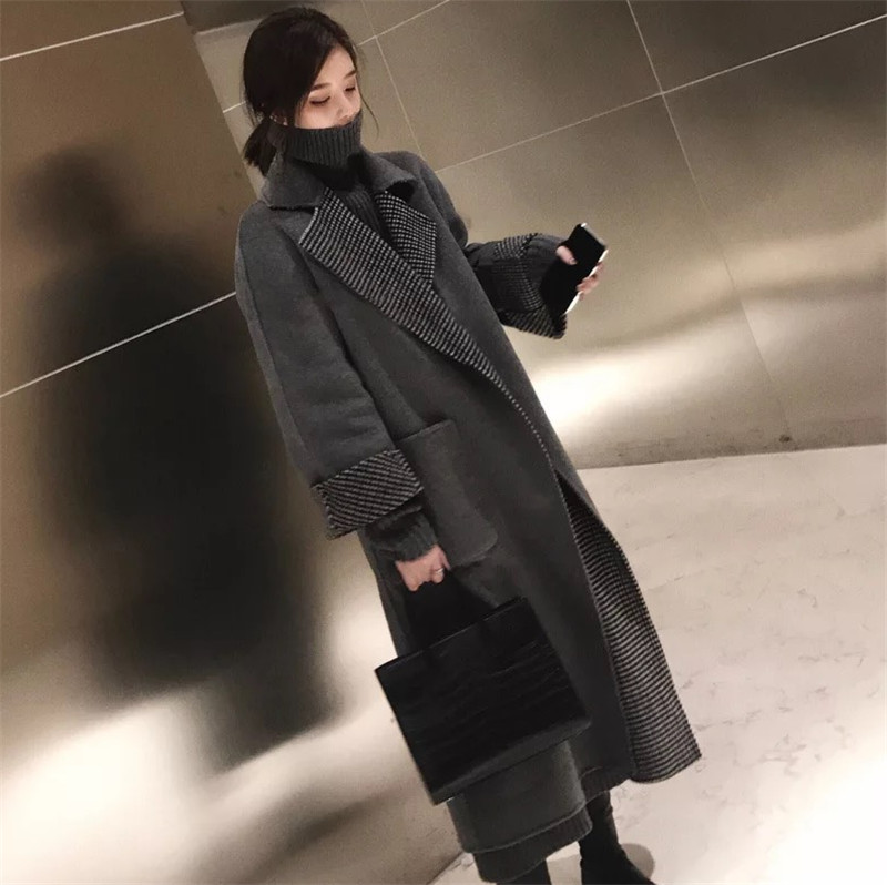 Sandro Moscoloni2021 new plaid double-sided cashmere coat coat coat women high-end long version autumn and winter