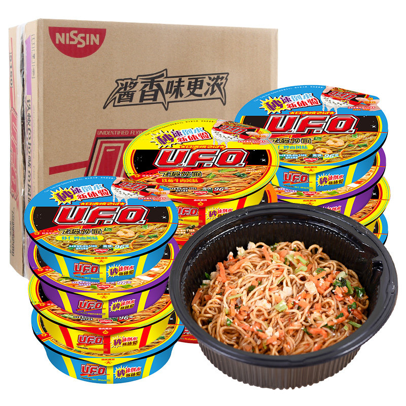 Nisching UFO UFO UFO fried noodles 12 bowls full box of instant food convenient dry noodles instant noodles mixed mix and match taste supper