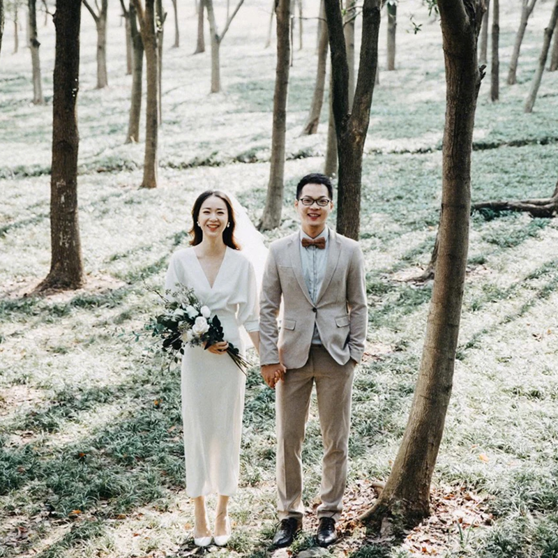 Han-style minimalist light wedding dress Mori department sweetness out yarn 2021 new sashimi Slim Outdoor Brigade Pat long sleeve dress
