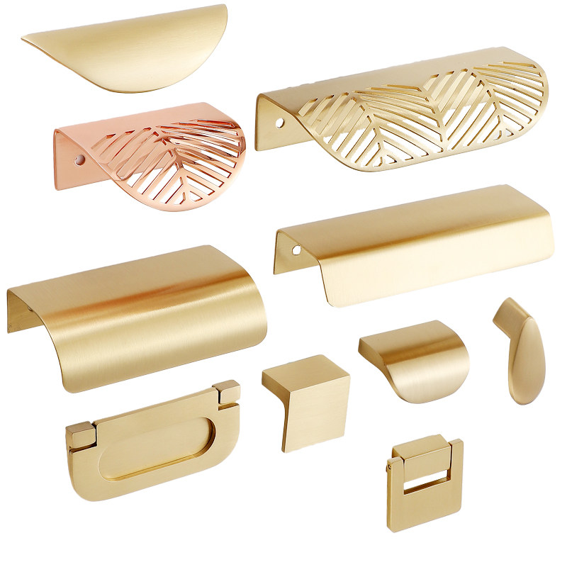 Pure copper Nordic minimal cabinet door handle gold full copper luxury full copper invisible closet door dark drawer brass handle