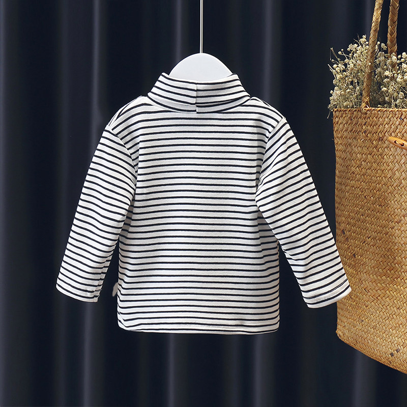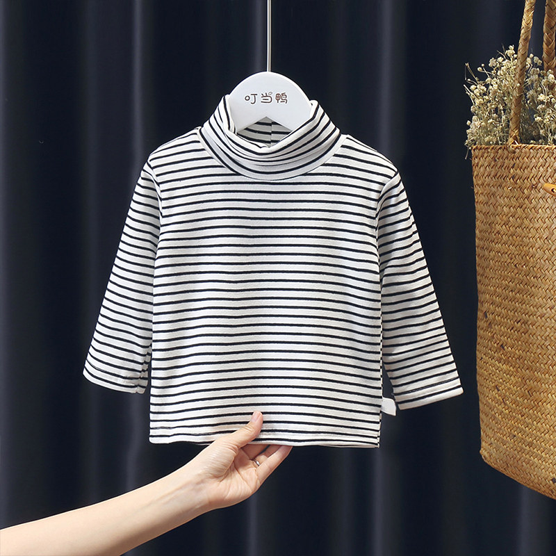 Girl gush with undershirt autumn winter clothing Children's T-shirt High collar striped blouses Thickened Warm Female baby Long sleeves