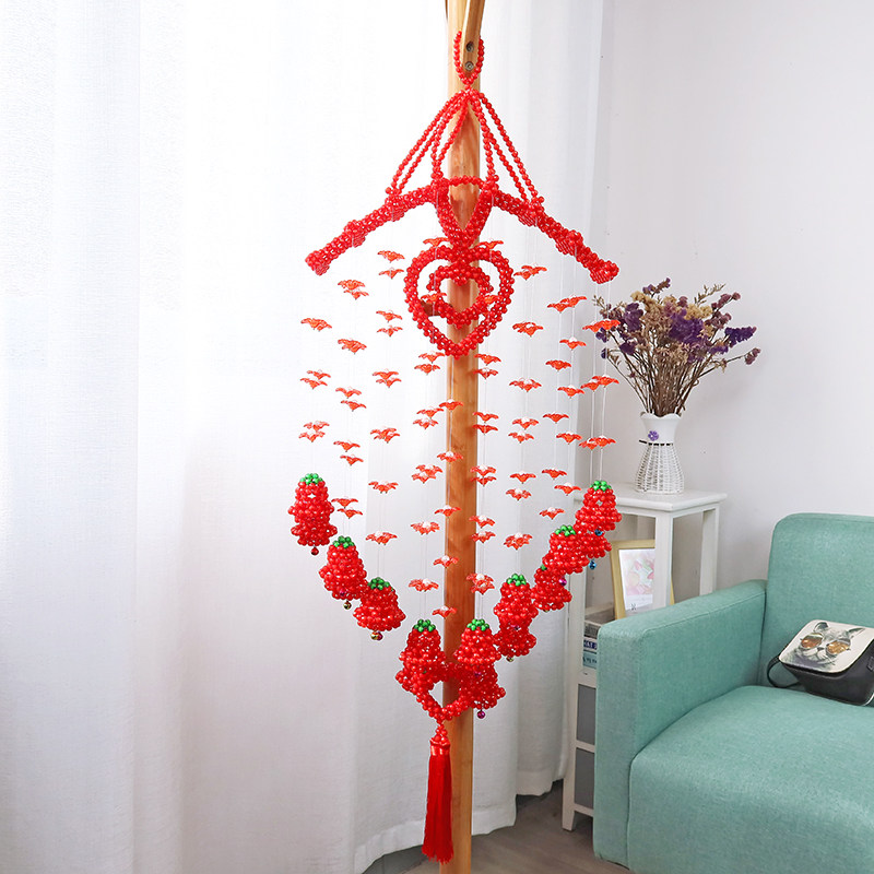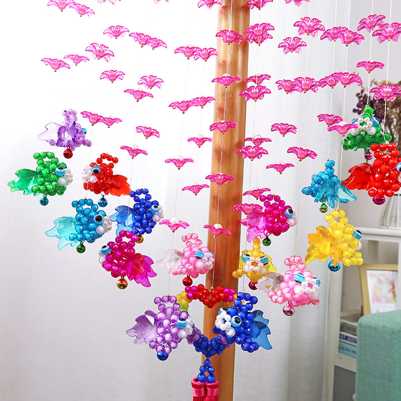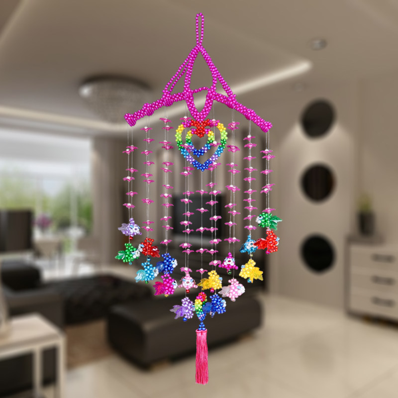 Beaded finished Chinese home decoration pendant hand-woven wind chime wall hanging living room goldfish rose screen hanging ornament
