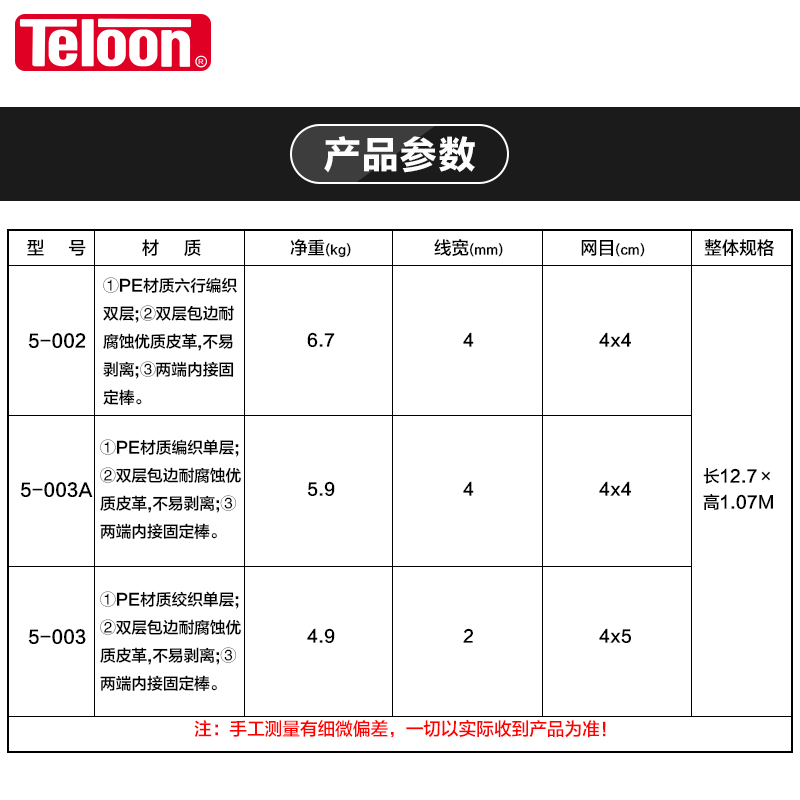 Netball net (PE single layer twisted rope mesh) 5-003 netball net (PE monolayer plus coarse woven rope mesh) 5-003A tennis ball net (PE plus coarse behaviour double rope mesh) 5-00