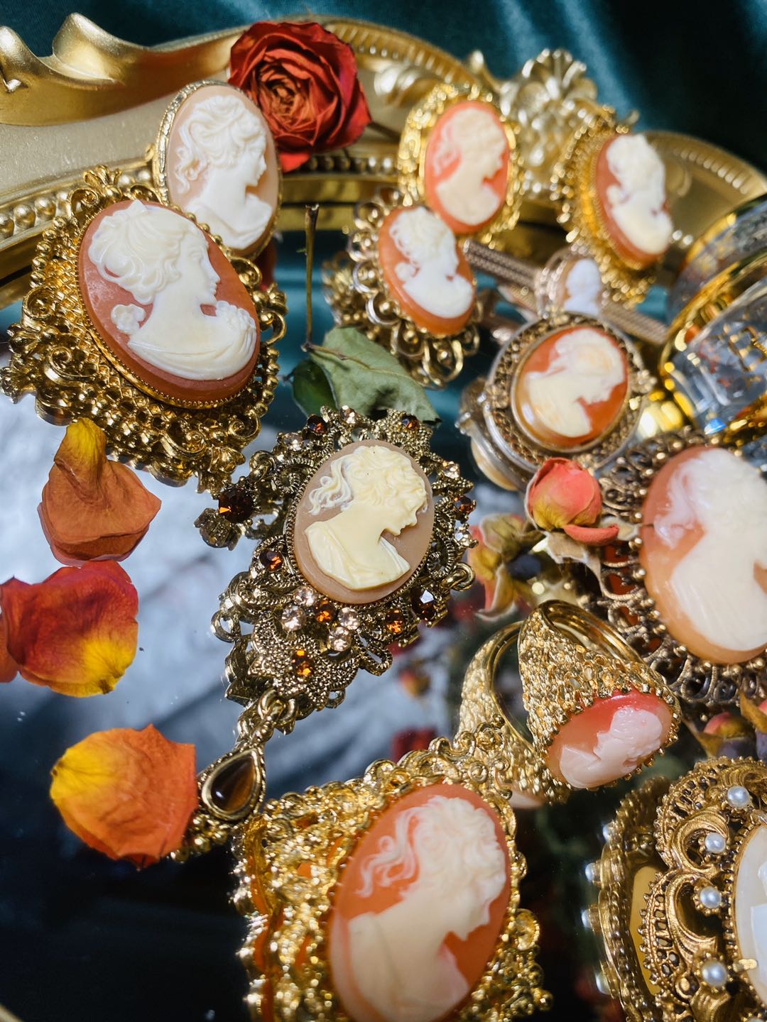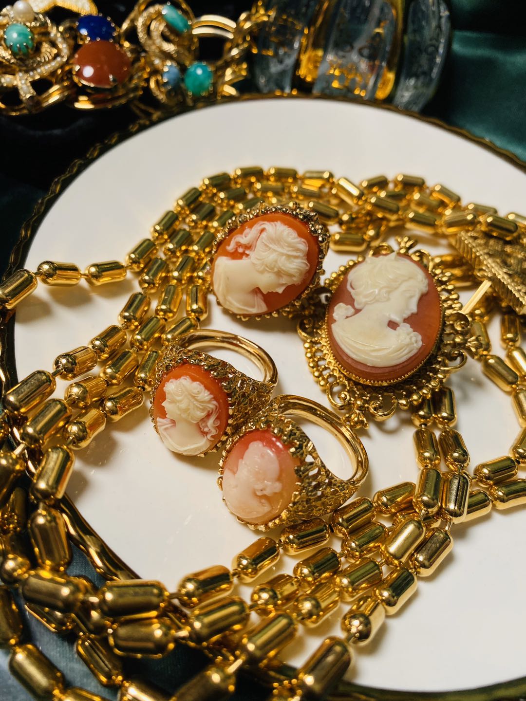 (Rich Man Bean) Vintage Antique Jewelry European Orphan Retro Jewelry Ring Brooch CAMEO(19)