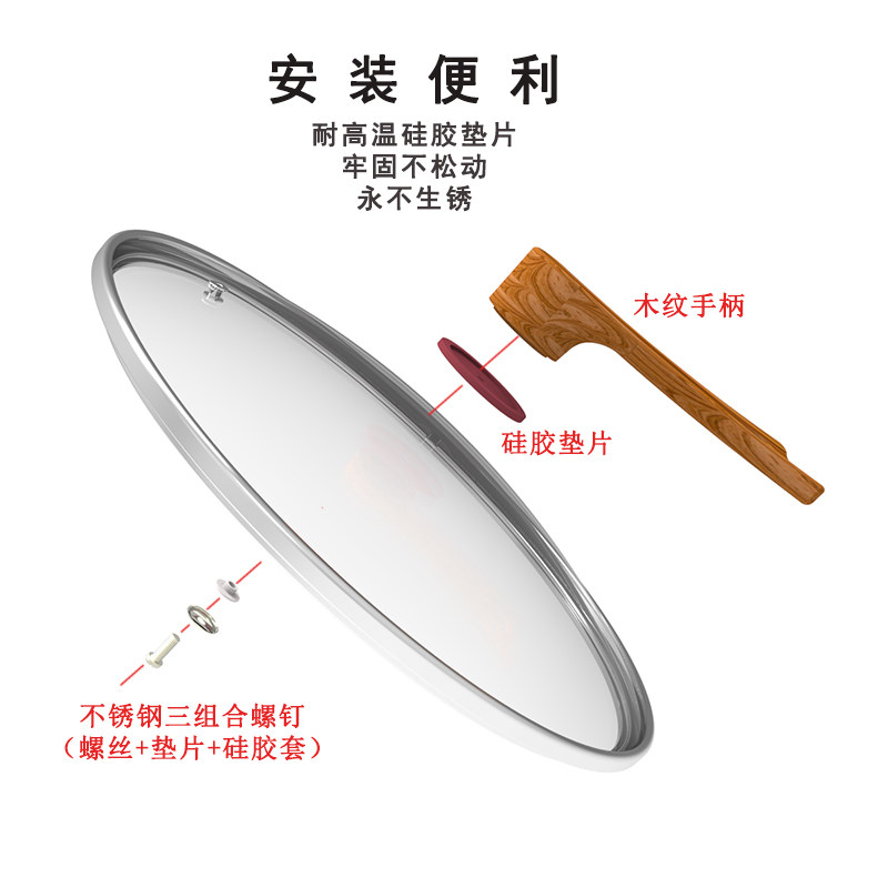 Pot cover tempered glass can stand pot cover household frying pan cover transparent soup steamer universal 28 30 32cm stainless steel