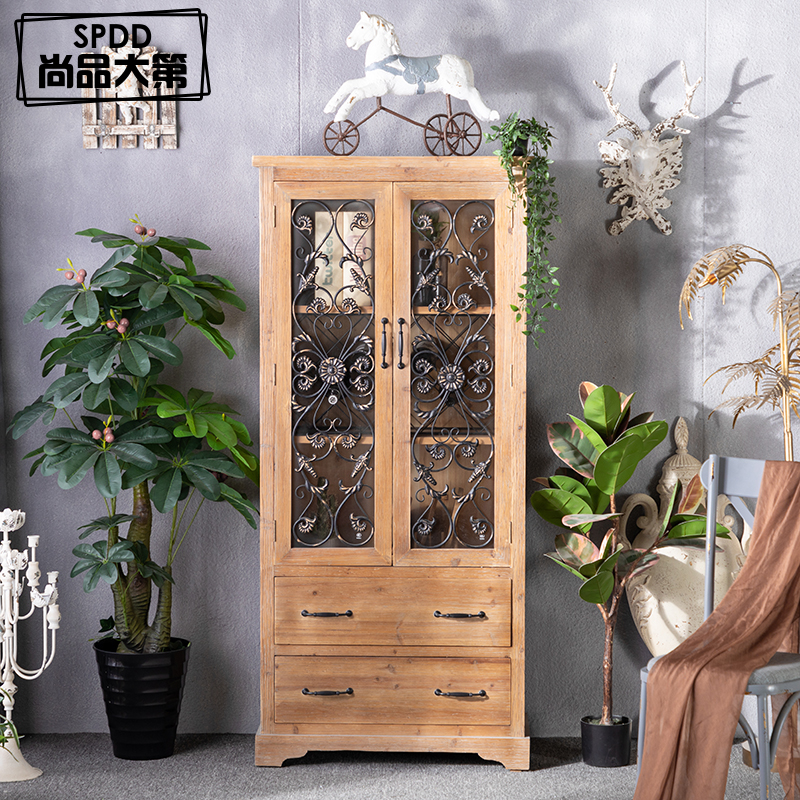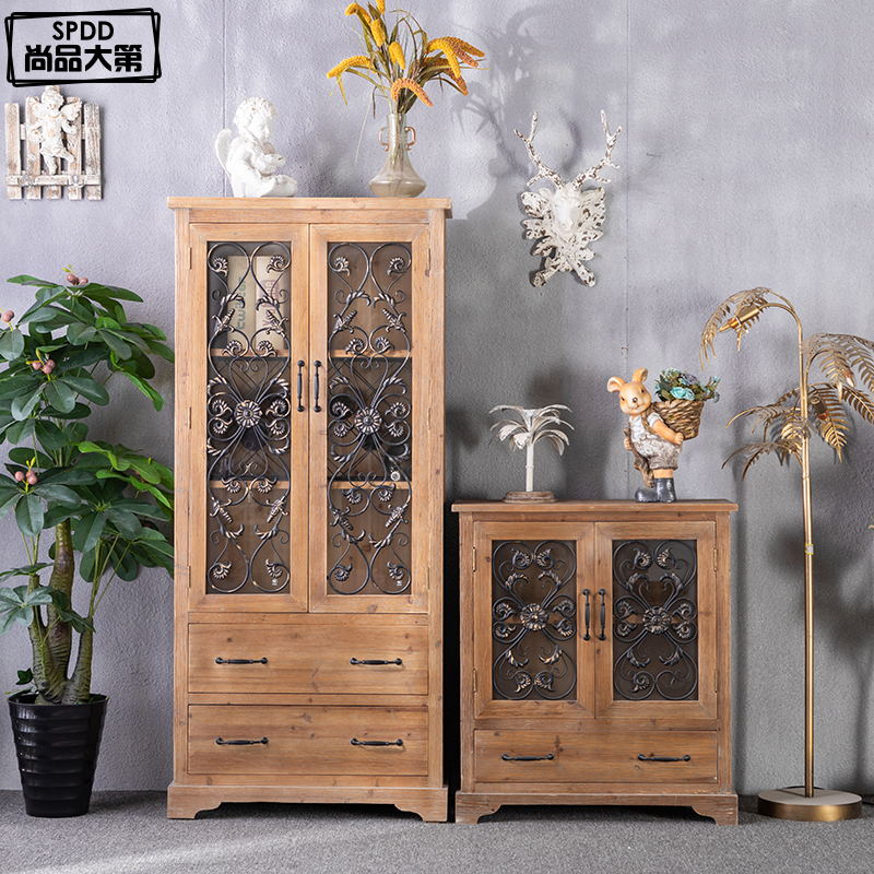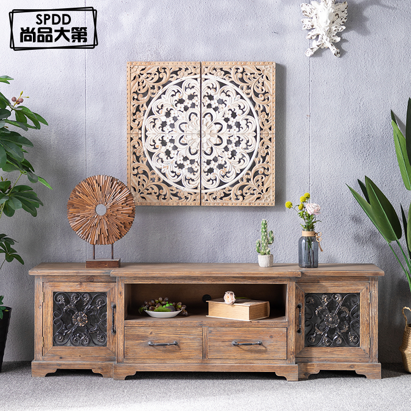 Retro American Dining Cabinet Hyun Guan Cabinet Folk Sleeping in old TV Cabinet Solid Wood Carved Wall Decoration Living-room Bedroom Containing Cabinet