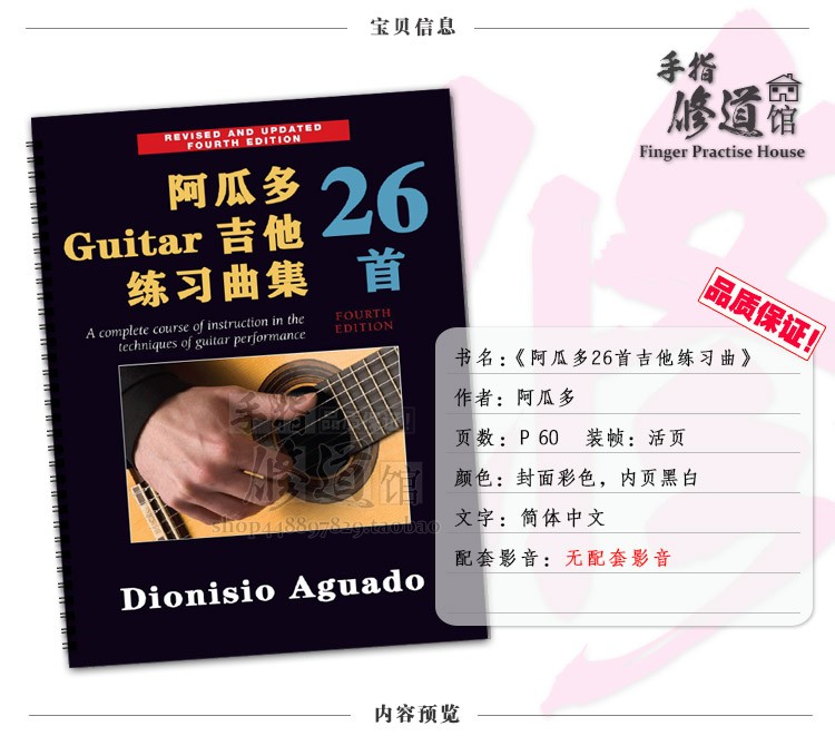 Aguado 26 classical etudes guitar score teaching material acoustic guitar tutorial professional basic skills finger training