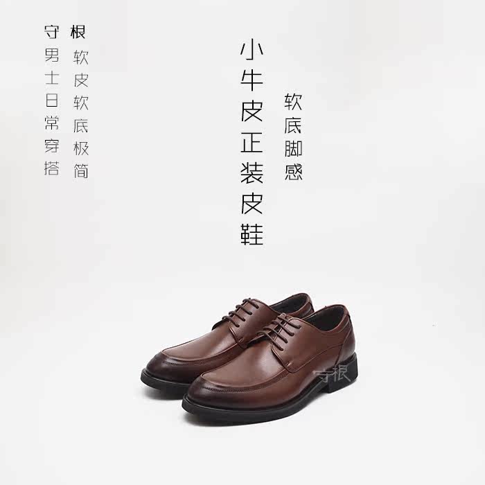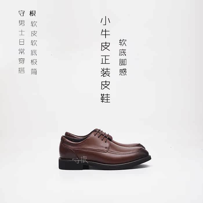 Spring Summer Workplace Derby Dress Leather Shoes Brown Soft-bottom Lace Calf Leather Business Men's Leather Shoes Keeper