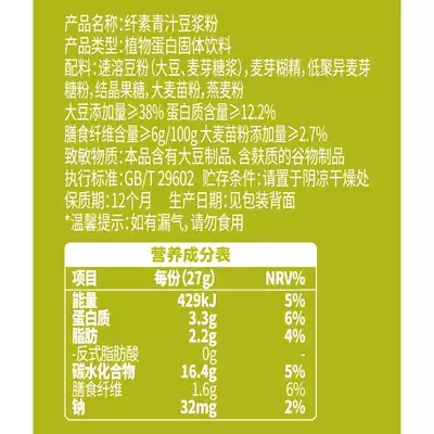 (Double 11 plus purchase) Jiuyang soy milk barley Wo leaf green juice soy milk powder 15 high dietary fiber soy milk