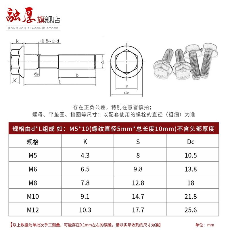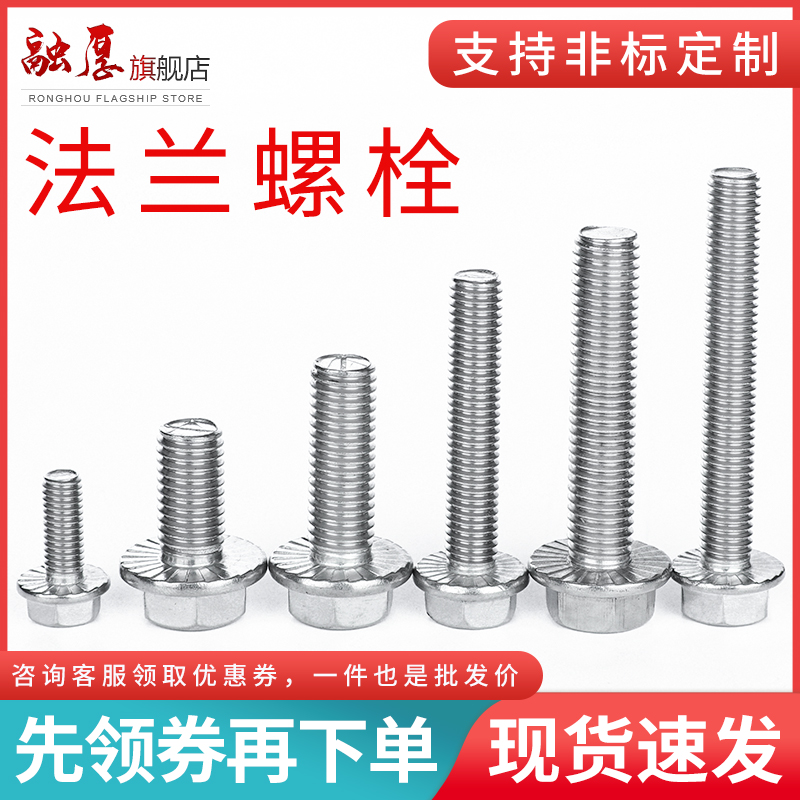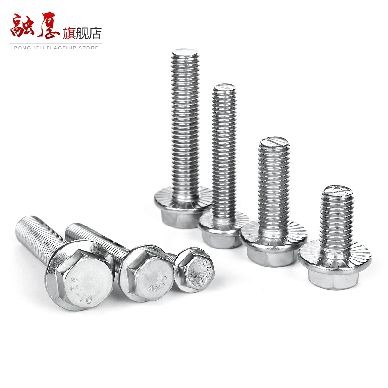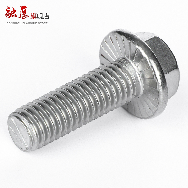 304 stainless steel flange face bolt Outer hexagonal full tooth screw ribbon cushion flower toothed screw M6M8M10M12