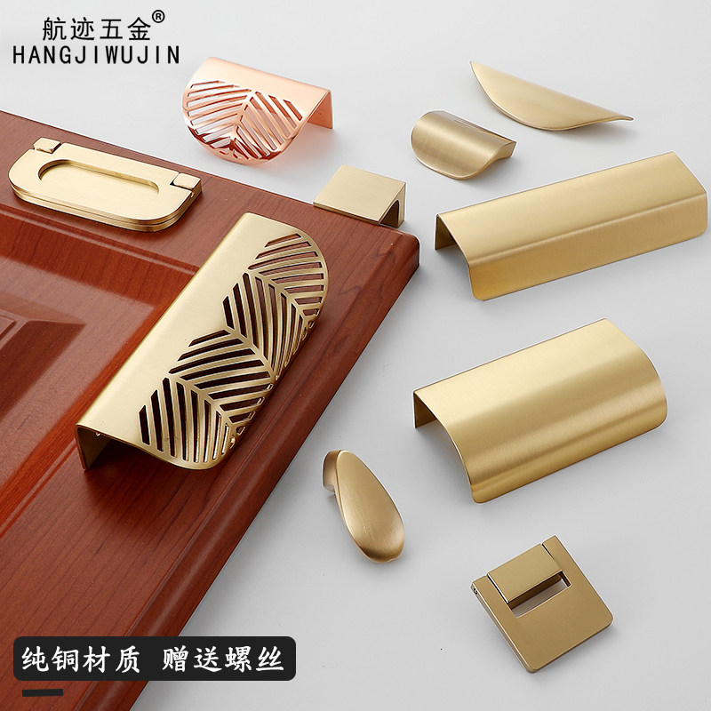 Trail Pure Copper Nordic Light Lavish Invisible Drawer Dark Handle Brass Coat Integral Cabinet Modern Minima Full Copper Cabinet Door Handle