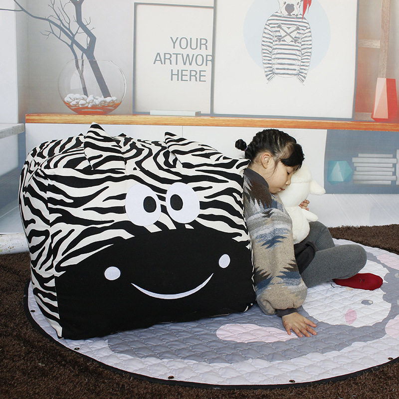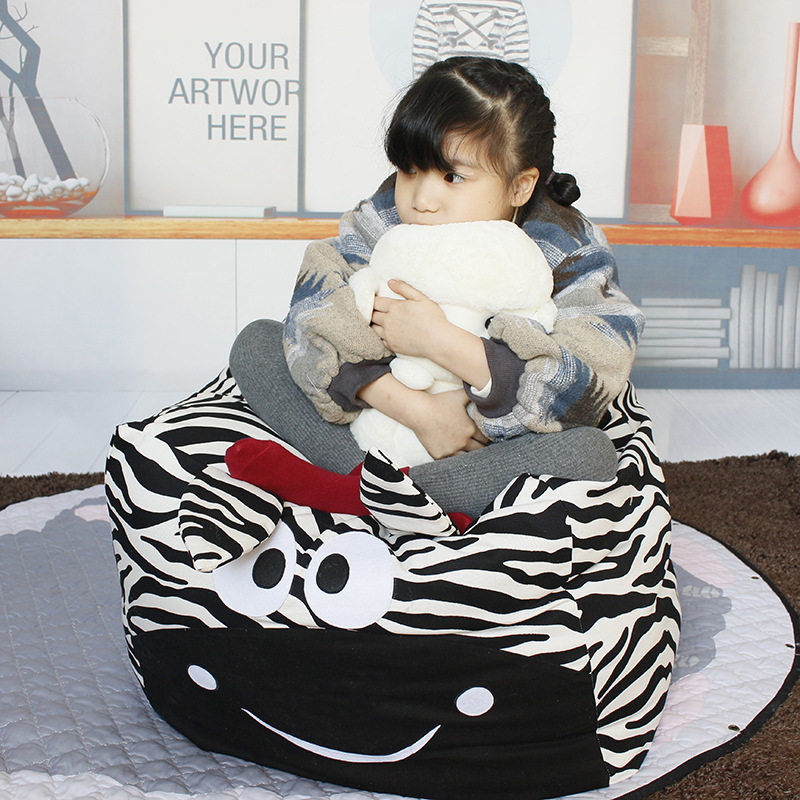 Children plush toy collection bag quality pure cotton canvas cartoon zebra with big square bean bag new cute