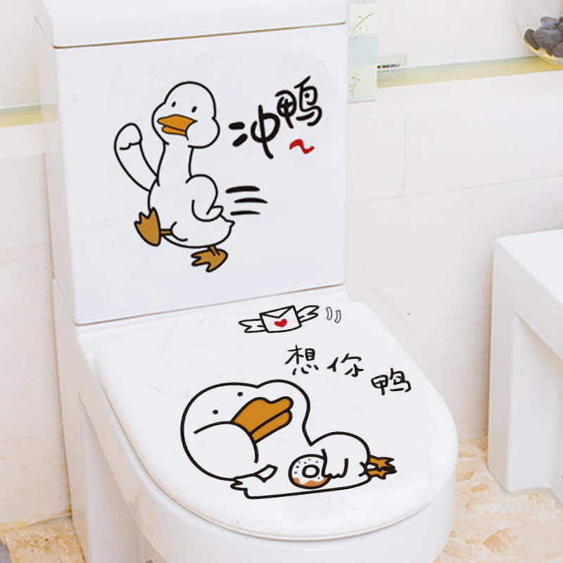 Makeup Room Creative Toilet Sticker with Funny Cartoon Cute Personality Nordic Waterproof Sitting Toilet Lid Sticker