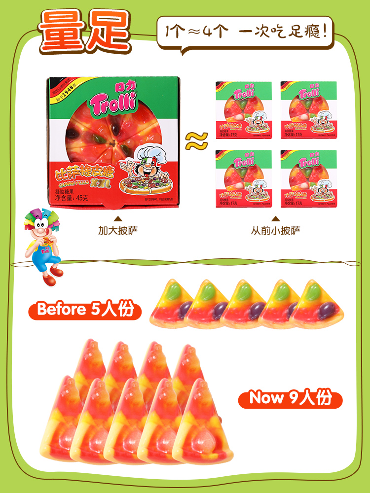 Germany Trolli mouth force XXL large pizza pizza fudge 45g Gummy shape candy Children's snacks