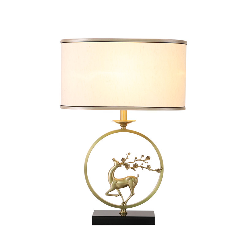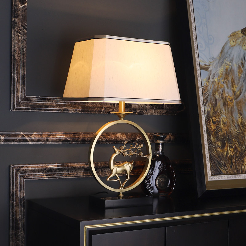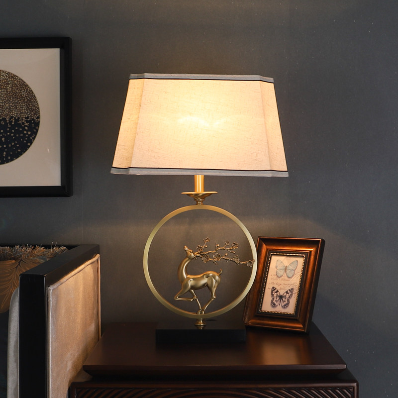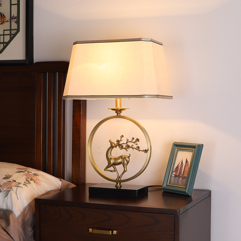 New Chinese-style all-copper table lamp living room study bedroom bedside lamp classical light luxury Chinese style antler Zen table lamp