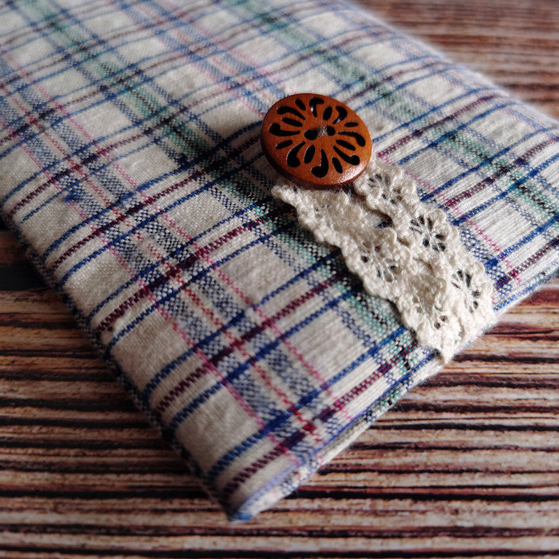 Original cotton retro hand-woven old coarse cloth mobile phone bag set Apple Huawei mobile phone protective cover manual creative bag