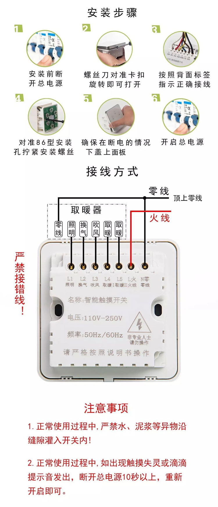 Smart bath master switch five open four open home universal touch screen three open six open one single fire free panel waterproof