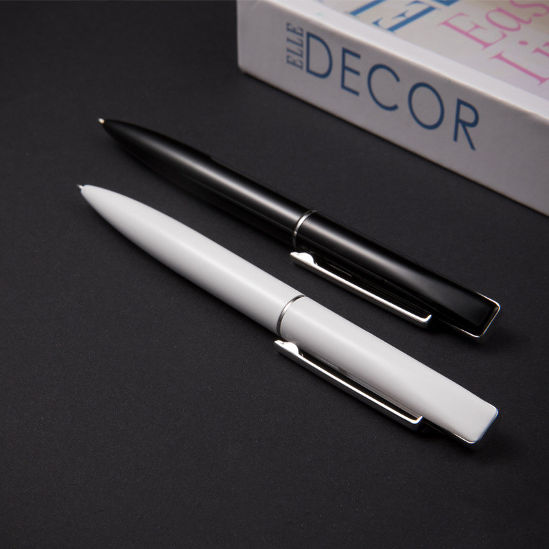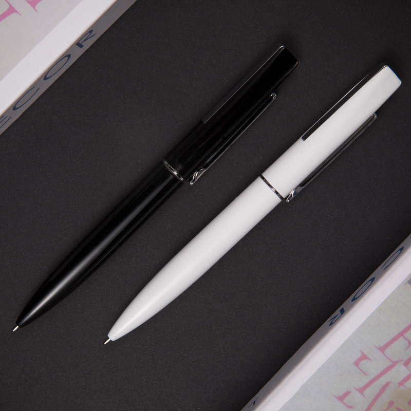 Student high-end black silver square plastic shell rotating ballpoint pen enterprise business custom gift oil pen