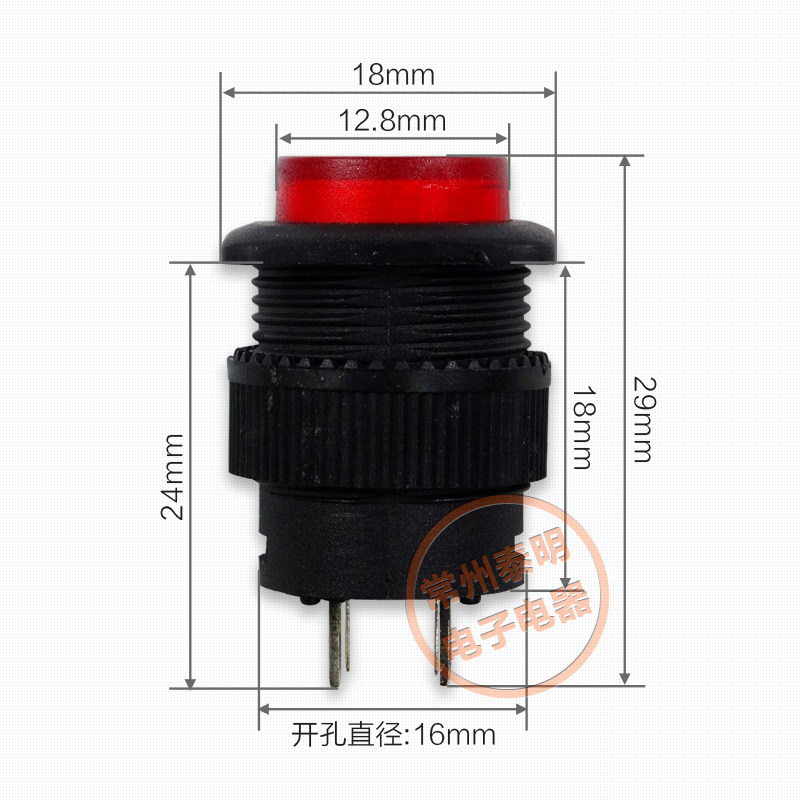Button switch self-lock with lamp R16-504AD square power switch 1 often open red yellow green 16mm 1 8V
