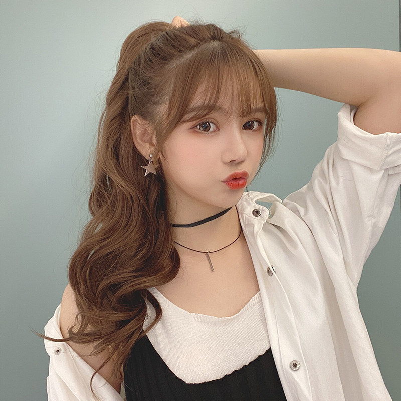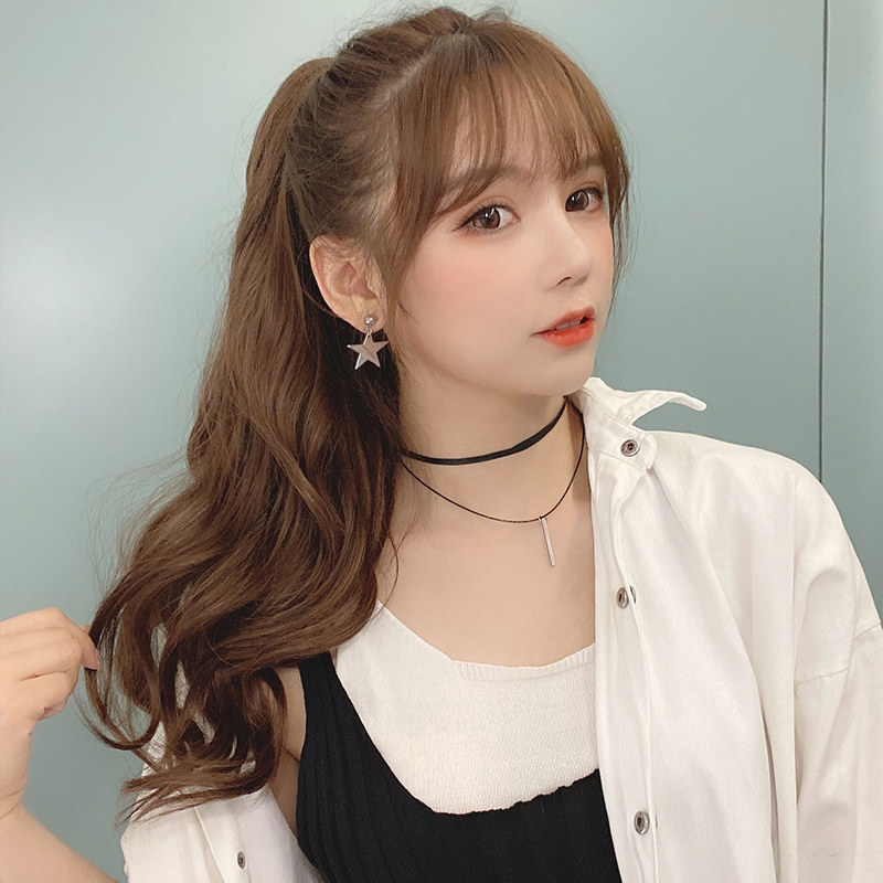 Invisible Small Tiger Clip Long Roll Horsetail Woman Long Roll Hair Fake Ponytail Large Wave Realistic Fluffy Medium Long Version Wig Piece