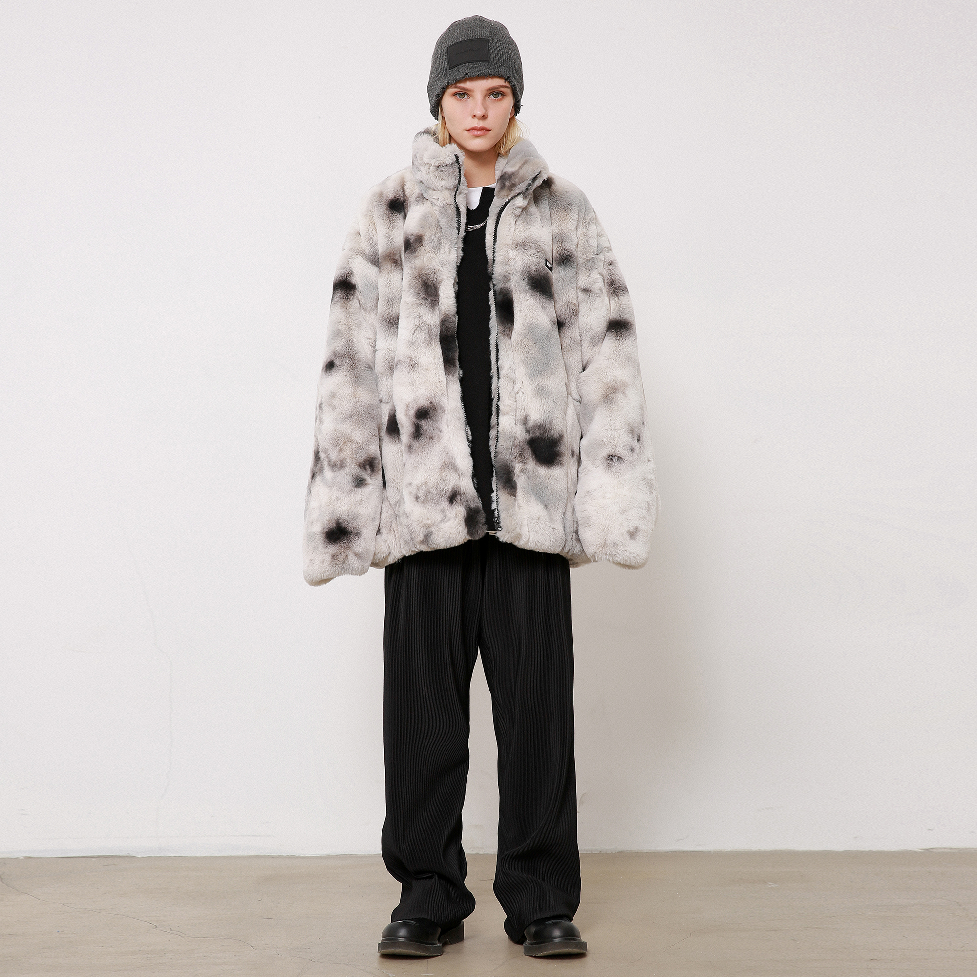 (WUT official shop) Splash Ink-dyed Fleece Cotton Clothing National Tide Card Men and Men Loose High Street Casual Jacket
