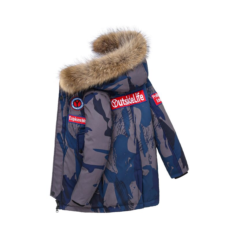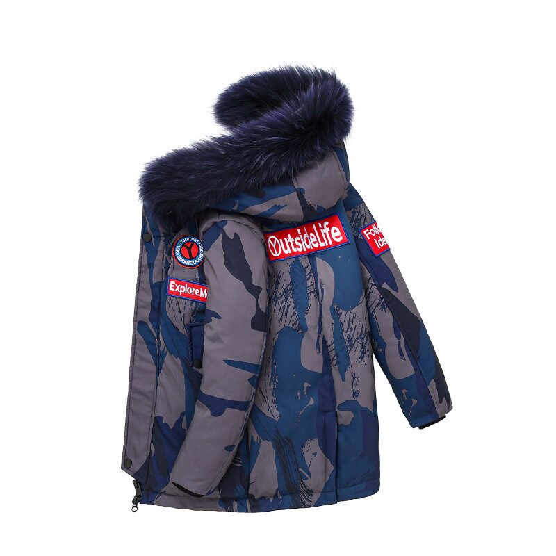 camouflage blue with blue fur collar camouflage blue with yellow fur collar camouflage black with blue fur collar camouflage black with yellow fur collar