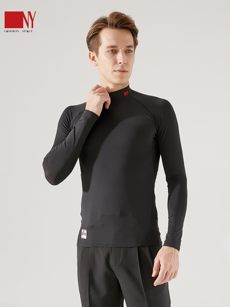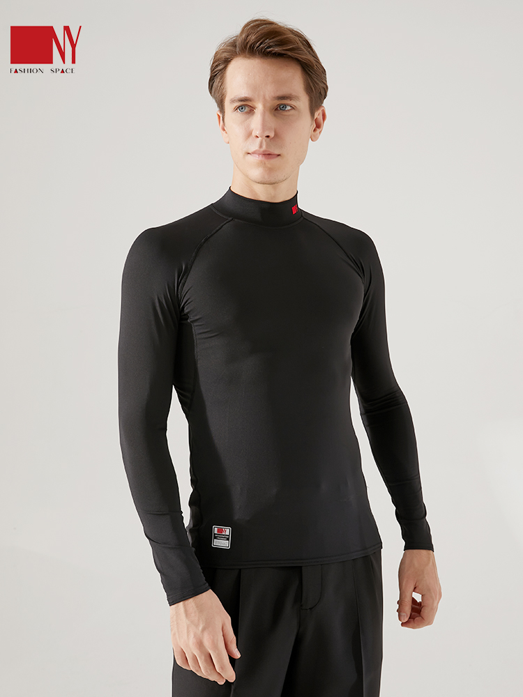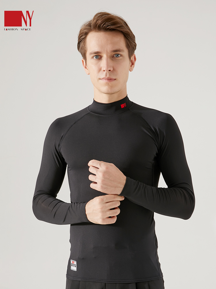 Nart men's blouses Long sleeves High collar T-shirt New Moden Dance Dance Wear Black Waltz Competition Practice