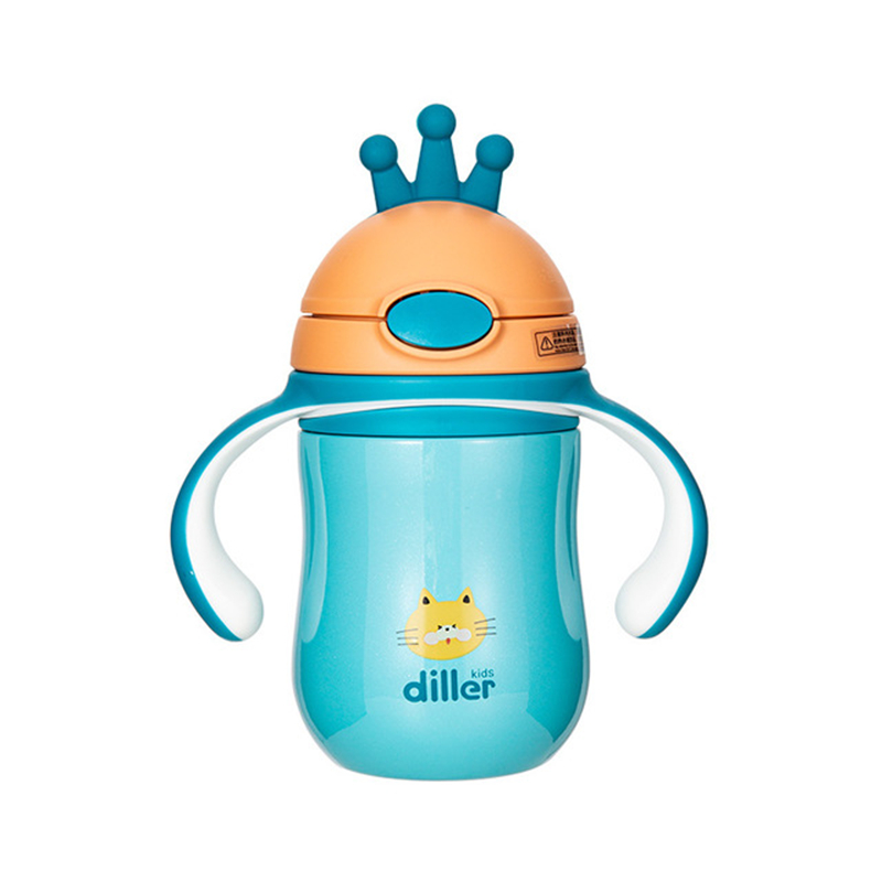 Children's insulated cup with straw handle Dual-purpose six-month school drinking cup baby water glass anti-leakage and anti-choking with gravity ball