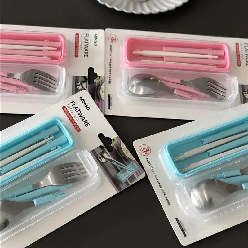 Styling Cute Fun Child Infant Baby Portable 430 Food Grade Stainless Steel Dining Spoon Dining Spoon Chopsticks Set