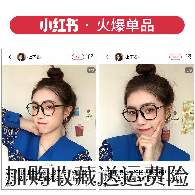 Large frame radiation protection against blue light myopia female Han version Chaonets red glasses Explicit Face Slim Frames Flat Light Protective Eye Racks