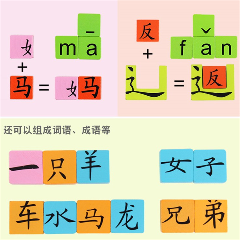 Nameta 175 grain happy learning Chinese character toy baby Early teaching pinyin dominoes 3-year-old puzzle assembling building blocks