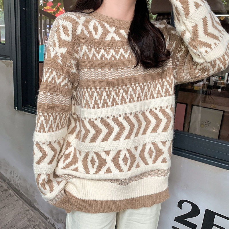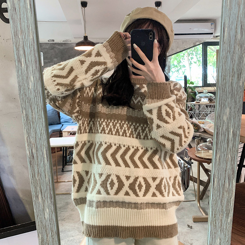 Net infrared wearing sweater women's thick pullover new autumn and winter new loose lazy style thick sweater women's top