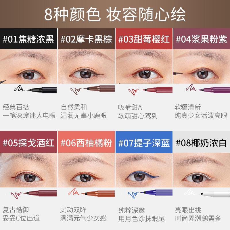 01 black (general trade version) 01 caramel thick black 02 mocha black brown 03 sweet berry cherry red 04 berry pink purple 05 tango wine red 06 grapefruit orange powder 07 raisin dark blue 08 coconut milk thick white
