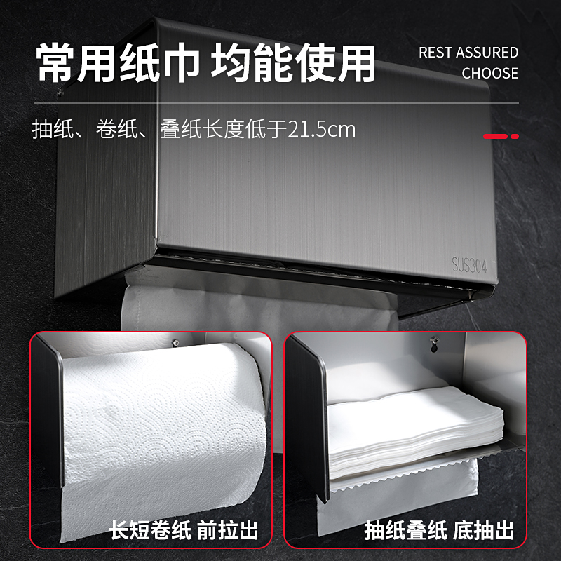 Powder room tissue box Waterproof non-perforated 304 stainless steel toilet paper box Toilet toilet paper box Wall-mounted toilet paper box