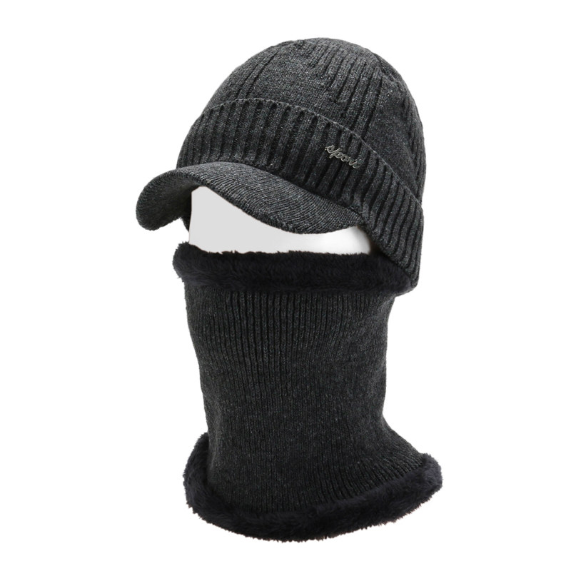 Beanie hat men winter outdoor riding pullover warm knit hat Korean version plus velvet thick bib neck two-piece set